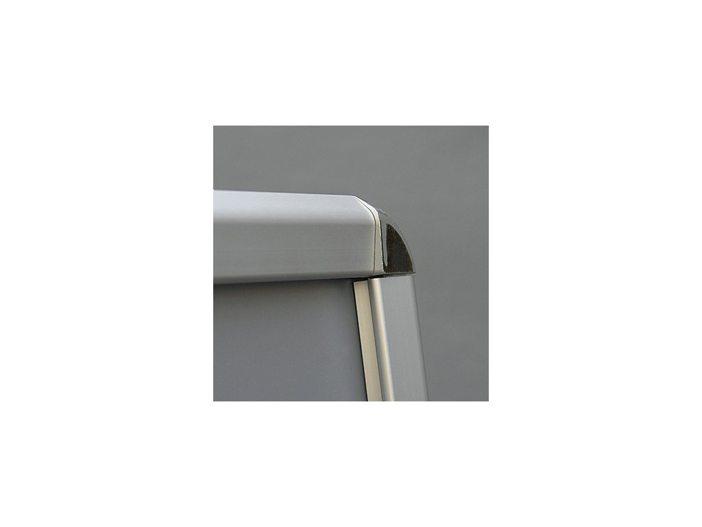 Profesionální reklamní A-stojan s kulatými rohy a pevnou hliníkovou konstrukcí o profilu 32 mm je ideální pro přehlednou a bezpečnou prezentaci velkoformátových plakátů.